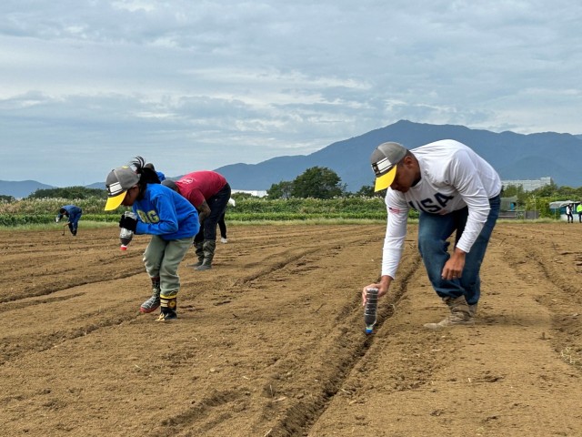 Twelve volunteers from Camp Zama, Japan, including Soldiers, family members, Department of the Army civilians and Zama Middle High School students, joined the Yotsuya Sunflower Association to sow canola seeds in the fields where the sunflowers will be planted next year for Zama City’s annual sunflower festival held in late summer.
