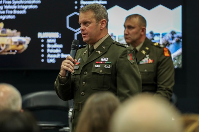 Col. Bryan M. Harris, the 2nd Armored Brigade Combat Team, 1st Inf. Div. commander, participated in the Warrior’s Corner event, where he gave insight on what the “Dagger” Brigade did in Europe during their nine-month rotation.