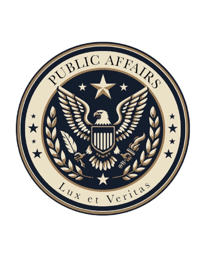 Emblem design for the Public Affairs Office, created on Sept. 19, 2024, featuring an eagle, olive branches, and the motto Lux et Veritas to symbolize truth and transparency. The design highlights the commitment of the office to communication excellence and public trust.