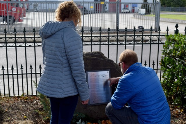 The streets on the installation in Eygelshoven have been named after the crewmembers of the B-17 that were killed in action (KIA) or MIA. Erica Nowells, U.S. Army Garrison Benelux site manager Eygelshoven, took Kyasky and his partner, Megan Magee, on a tour of the installation to see the street signs for themselves. “There is a total of five street signs we have.” said Nowells. “The memorial site is right up the street here.”