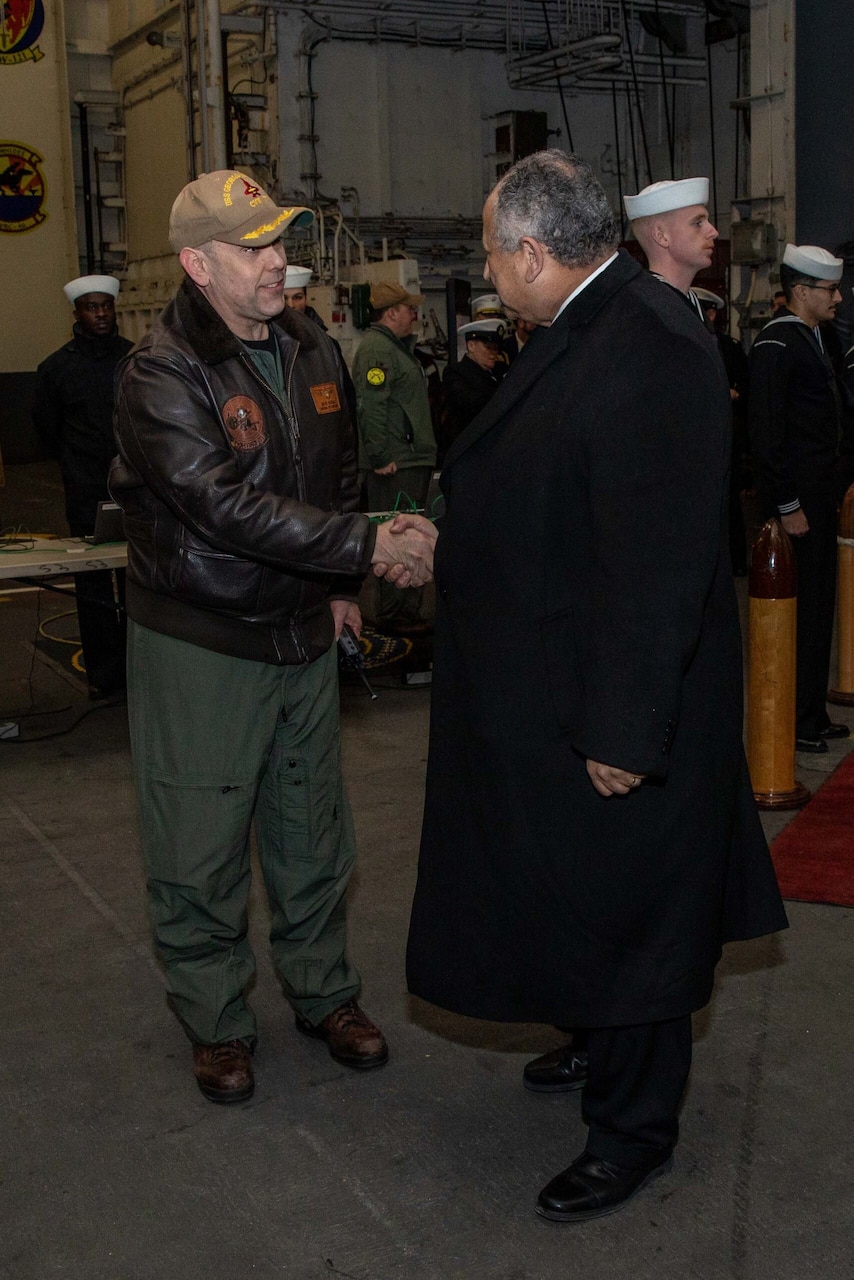Upon Del Toro’s arrival to the ship, he visited the mess decks where he was able to talk with Sailors on duty and answer their questions about his time in the Navy and as Secretary, as well as Sailor quality of life and service.