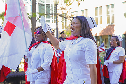On Veterans Day, the newly formed Lt. Col. Luke Weathers Jr. VA Nurse Honor Guard proudly marched down Second Street in nursing regalia to show their respect for our nation’s Veterans. This same group of nurses has also accepted the mission of honoring the distinguished careers of VA nurses as a tribute during their memorial or funeral services.