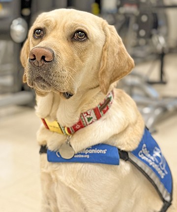 Taryn was raised and trained by Canine Companions for the first two years of her life. It was there she learned the skills required to be a facility service dog. A Canine Companions facility dog is bred to be calm, reliable and affectionate, and is trained to perform over 30 service dog commands, including picking up items, opening doors and providing calming pressure across the lap or body.
