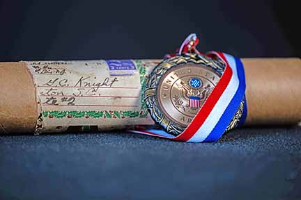 “The first thing I noticed was this number, which I associated as a service number,” said Bridges. “I was able to plug it into one of our VA systems that looks up Veterans with service numbers and was able to find Charles Knight.” The name on the back of the medal was Edward C. Knight, Charles’ brother.