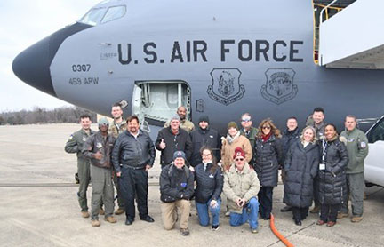 In gratitude of Going’s exceptional support for Melton, the District of Columbia ESGR invited her and Ken to participate in the Employer’s Bosslift program Feb. 20, 2025. They flew aboard a KC-135 Stratotanker from the 459th Air Refueling Wing at Joint Base Andrews in Maryland and observed in-flight refueling operations, including the refueling of F-16 Fighting Falcons.