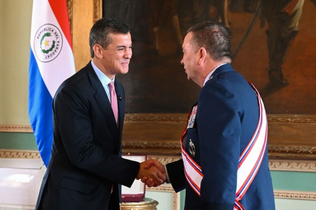The award was presented April 24 in the Government Palace’s Independence Hall in Asunción, Paraguay. It is the highest award the commander of the Paraguayan Armed Forces grants to civilians and military personnel for their distinctive, valuable service.