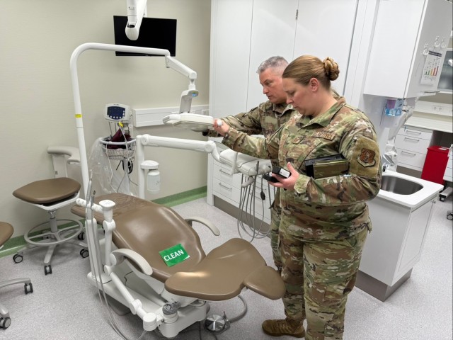 Master Sgt Ashley Malone and Maj. Rolf Osteraas conducting an illumination survey in the Landstuhl Specialty Dental Clinic