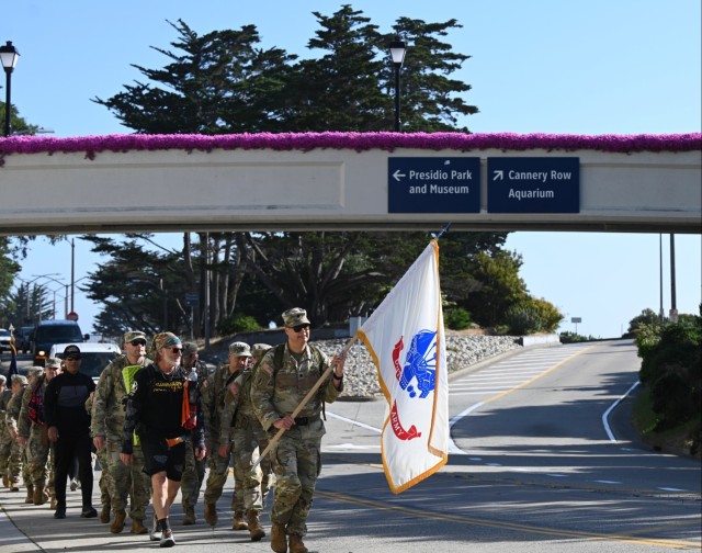 At the conclusion of the ceremony, Col. Artino invited those in attendance to join him on the next leg of the march across Lower Presidio Historic Park and on to the Monterey Bay Coastal Recreation Trail. From the Presidio of Monterey, the ruck march will continue northbound, around the clock, until reaching it’s destination at Camp Parks on May 11.