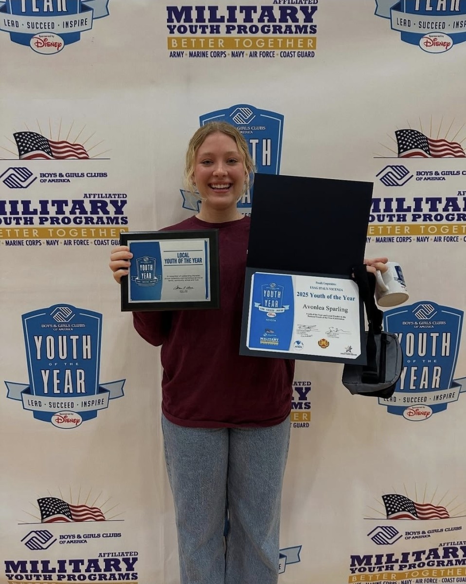 VICENZA, Italy — A senior at Vicenza High School, Avonlea Sparling, has been named the 2025 Military Youth of the Year for Europe for the Boys and Girls Club program, adding another accolade to her list of achievements.