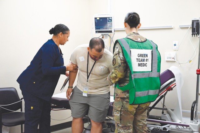 The exercise posed multiple casualties, some of them at CRDAMC, where the hospital simulated a triage response with role players portraying victims being triaged and moved for treatment.