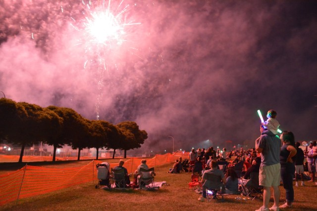 USAG BAVARIA – HOHENFELS, Germany — Fireworks light up the sky above Warrior Field as U.S. Army Garrison Bavaria – Hohenfels community members watch. USAG Bavaria – Hohenfels celebrated the 249th anniversary of the signing of the Declaration of Independence with “Freedom Fest” July 3, 2025 in the 1st Battalion, 4th Infantry Regiment, cantonment. (U.S. Army photo by Bryan Gatchell, USAG Bavaria Public Affairs) (Photo Credit: U.S. Army)