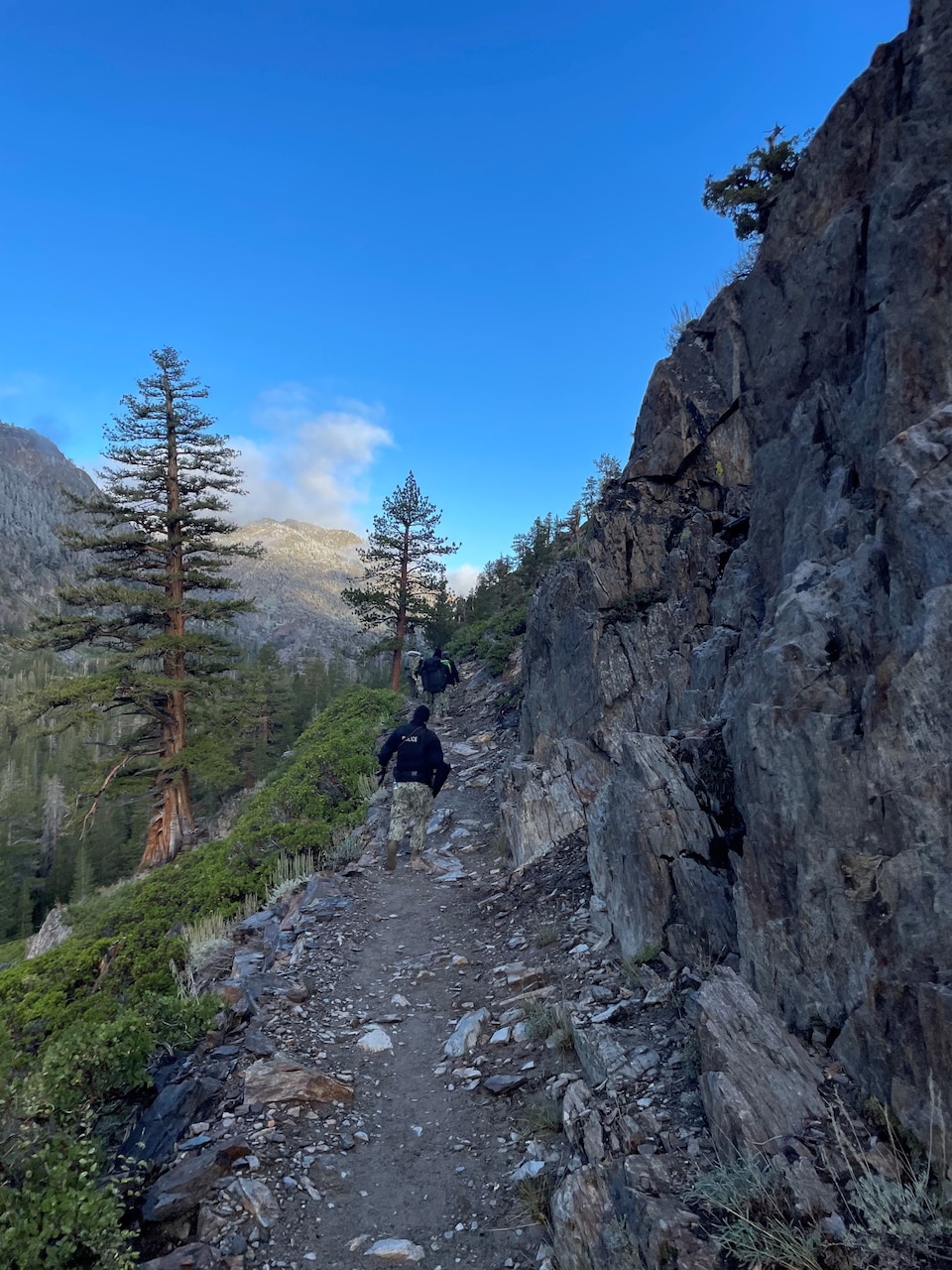 The topography where the helicopter was located was rugged and difficult to maneuver. The team from Lemoore and Fallon needed to hike daily through challenging terrain along the PCT to get to the helicopter site.