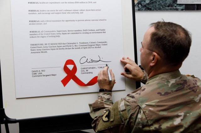 The proclamation for Alcohol Awareness Month read, in part, “All commanders, supervisors, service members, [Department of Defense] civilians of the United States Army Japan are committed to creating an environment that reduces the stigma of seeking help” for alcohol abuse.