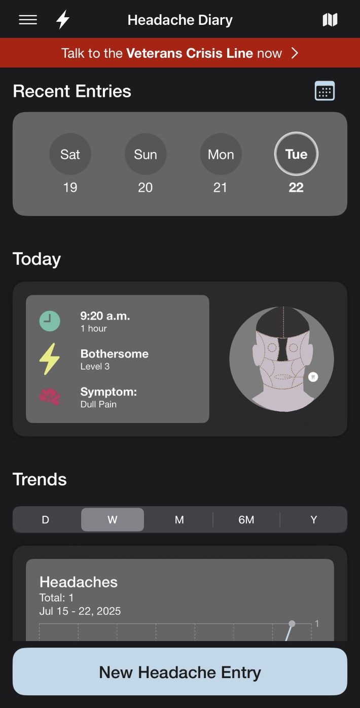 If you live in a rural or underserved area where frequent in-person specialty care may not be easily accessible, VA Headache Coach can be especially helpful. By using the app’s headache diary to capture your symptoms over time, you can give your VA or non-VA medical provider a clearer picture of what you’re experiencing—leading to better, more informed care, even if it’s spread across different visits or locations.