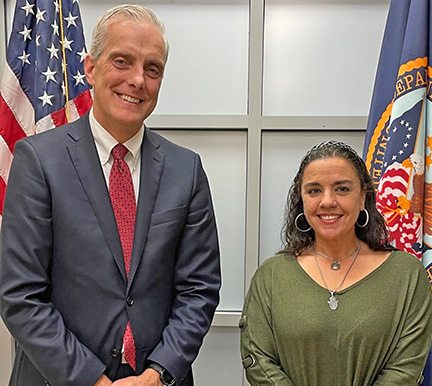 In the photo above, Bay Pines VA Assistant Director Justina Wells greets VA Secretary Denis McDonough during his visit to Bay Pines VA’s Sarasota VA Clinic April 13, 2023. Wells briefed McDonough on the levels of service provided to Veterans at the clinic. The Sarasota VA Clinic has seen an 11.8% increase in unique patients since FY20.
