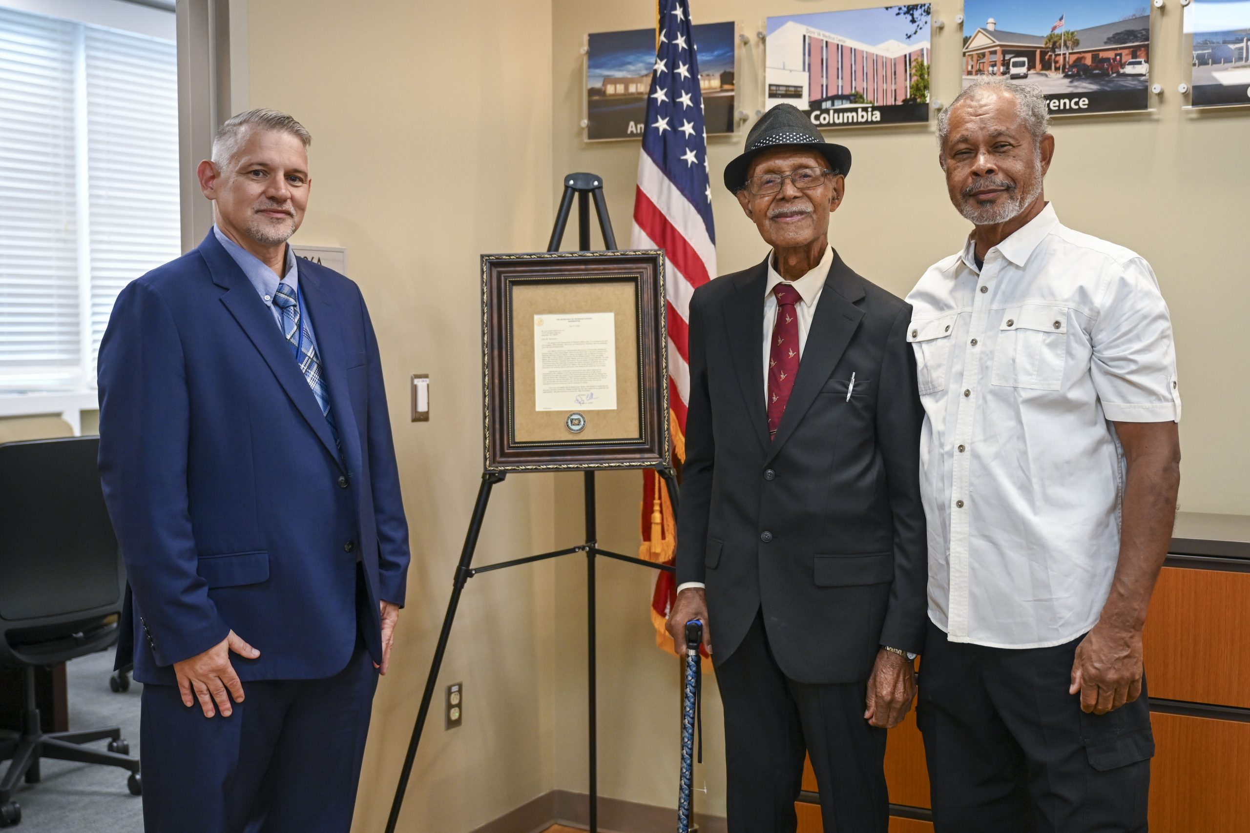 On July 29, the Columbia VA Health Care System honored McKinnon ahead of his 100th birthday with a centenarian coin and a certificate from the VA Secretary, presented by Columbia VA Health Care System acting Executive Director and CEO David Brett Vess.