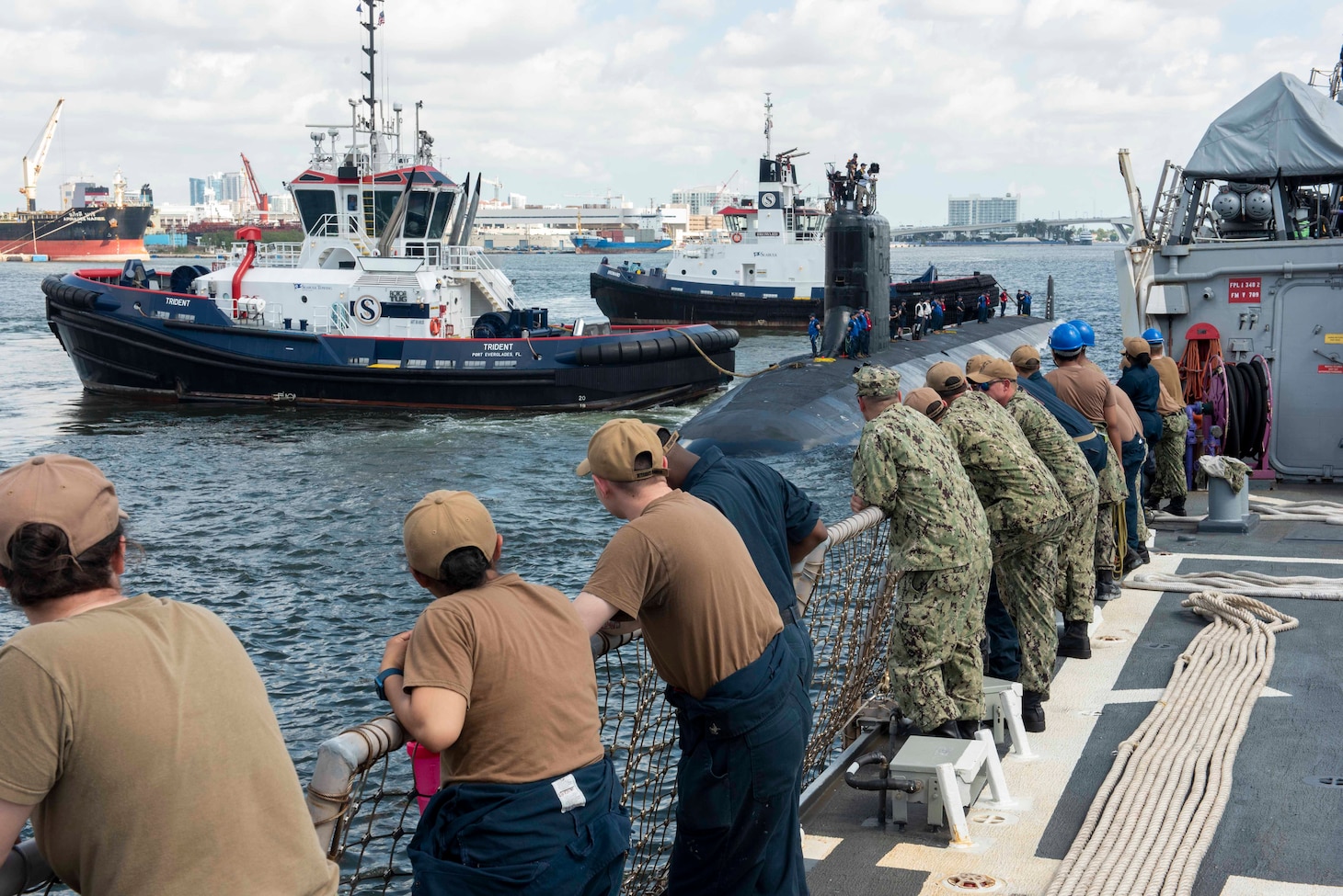 U.S. Navy destroyer, USS Cole (DDG 67), a ship commissioned in 1996 in Fort Lauderdale, was the first to arrive followed by the amphibious dock ship USS New York (LPD 21), expeditionary fast transport USNS Newport (T-EPF-12) and the fast attack submarine USS Indiana (SSN 789) early, Sunday morning, April 23. USCGC William Flores (WPC-1103) will arrive Monday.