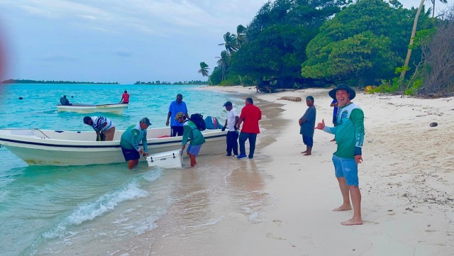 A group of U.S. Army Garrison-Kwajalein Atoll residents and friends recently delivered much-needed water and supplies to a remote part of Kwajalein Atoll—the island of Ebadon.