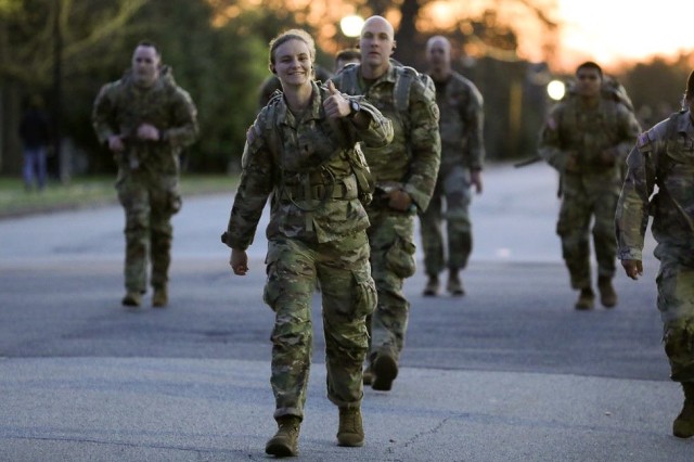 FORT BELVOIR, Va. – Nearly 300 Soldiers, sailors, airmen, and Marines gathered here on April 2 at 4 a.m. to participate in Marsjmerket, also known as the Norwegian Foot March.