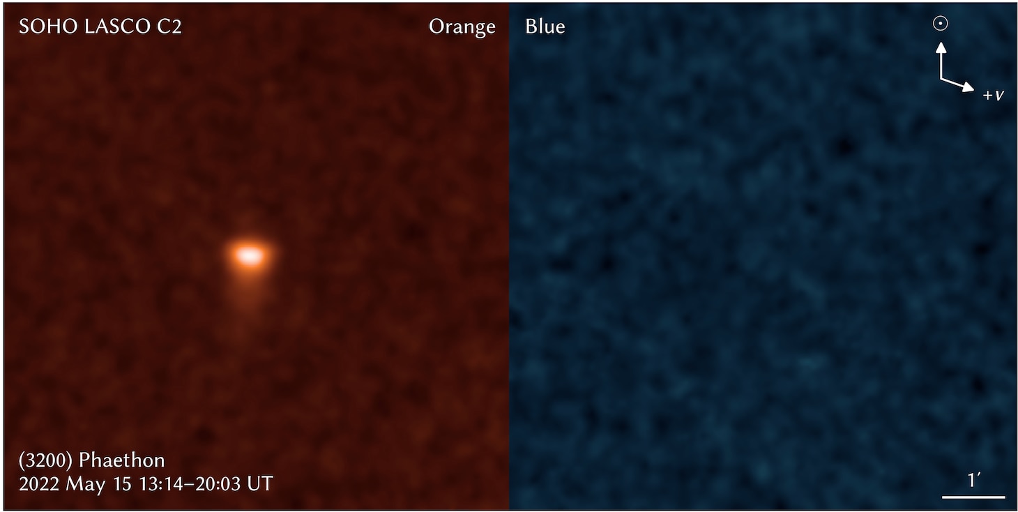 In early 2022, Battams and CalTech Planetary Science Ph.D. Candidate Qicheng Zhang, a former NRL summer intern, devised a unique observing plan to leverage LASCO’s capabilities, leading to a pivotal new result regarding near-sun asteroid Phaethon. Their study, soon to be published in the Planetary Science Journal, overturns the widely-held belief that Phaethon produces a significant quantity of dust as it passes by the sun, instead finding it releases sodium. This is a substantial result regarding the asteroid that is set to be visited during a Japanese Aerospace Exploration Agency Destiny+ mission in 2028.