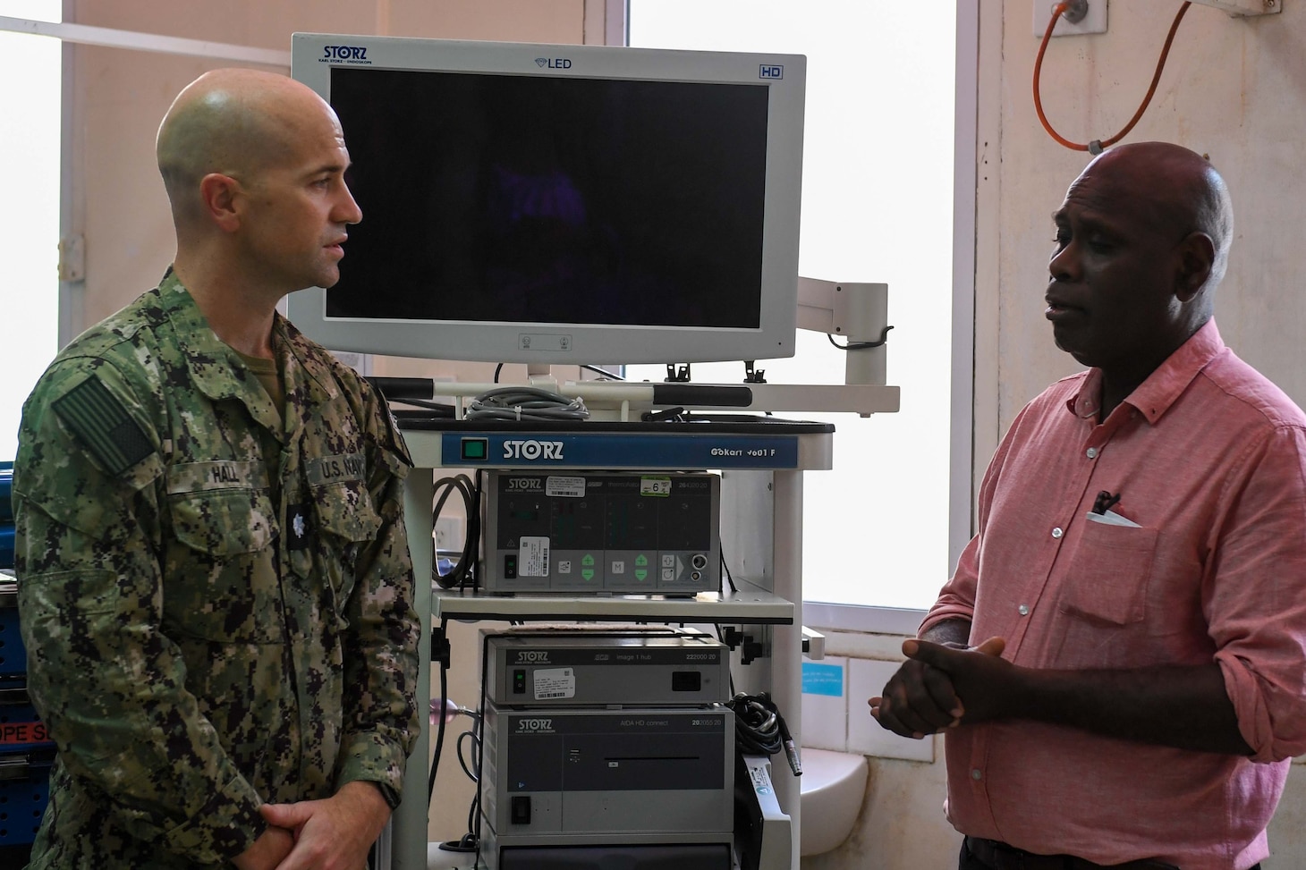 Cmdr. Gregory Hall serves as the surgical planner aboard the ship. He said the donation included surgical equipment and instruments to perform minimally invasive surgery “across a wide range of surgical specialties” like orthopedics, pulmonology, and gastroenterology.